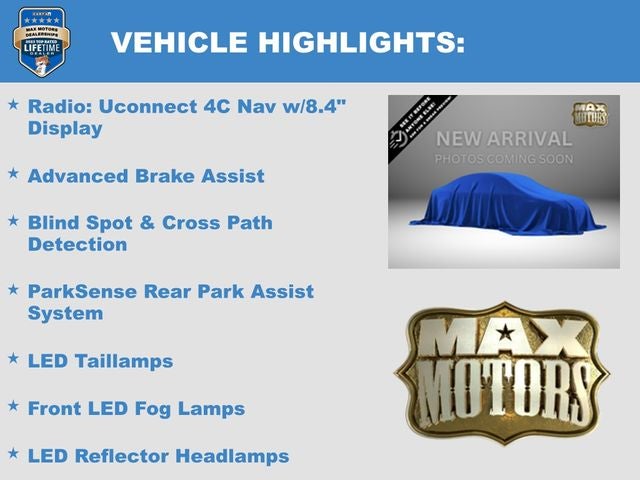 1-Year SiriusXM Guardian Trial, 4G LTE Wi-Fi Hot Spot, 5-Year SiriusXM Traffic Service, 5-Year SiriusXM Travel Link Service, 8.4 Radio & Premium Audio Group, 8.4 Touchscreen Display, Advanced Brake Assist, Advanced Safety Group, Alloy wheels, Alpine Premium Audio System, Auto-Dimming Rear-View Mirror, Blind Spot & Cross Path Detection, Cold Weather Group, Daytime Running Lamps LED Accents, Emergency/Assistance Call, For Details, Visit DriveUconnect.com, Front LED Fog Lamps, Full Speed Forward Collision Warning Plus, GPS Navigation, HD Radio, Heated Front Seats, Heated Steering Wheel, LED Lighting Group, LED Reflector Headlamps, LED Taillamps, ParkSense Rear Park Assist System, Radio: Uconnect 4C Nav w/8.4 Display, Safety Group, SiriusXM Traffic Plus, SiriusXM Travel Link.