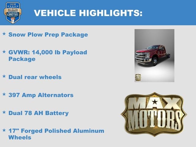 4WD, 17 Forged Polished Aluminum Wheels, 397 Amp Alternators, Dual 78 AH Battery, Dual rear wheels, GVWR: 14,000 lb Payload Package, Snow Plow Prep Package.